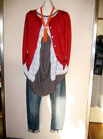 ![]() ![]() 2011年 9月号掲載自社ブランドの『萌奈香』は40〜60代の女性向け商品が充実しています。今回はこの中から、秋にピッタリのコーディネートを紹介します。 まずは明るいのチュニックと首元にギャザーをあしらったインナーの組み合わせ(左)。フィット感が自然で、おまけに軽くてシワになりにくいチュニックは旅行にも最適。ストレッチのきいたデニムとの組み合わせが◎ですよ。次はミセス分野にも広がってきたジレ(中)。前下がりの襟部が特徴で、遊び心のあるチェック&水玉の模様。写真は上下セットですが、下はデニムと組んでももちろんOK。最後に今秋おすすめのシャツとチュニックのスタイル(右)。インナーを襟付にすることで少しだけラフさが取れ、ドレッシーな雰囲気に。シャツの色により様々なイメージが楽しめます。 萌奈香は重ね着も楽しめるブランド。この他にベストやカーディガンも合わせてみてください。 |